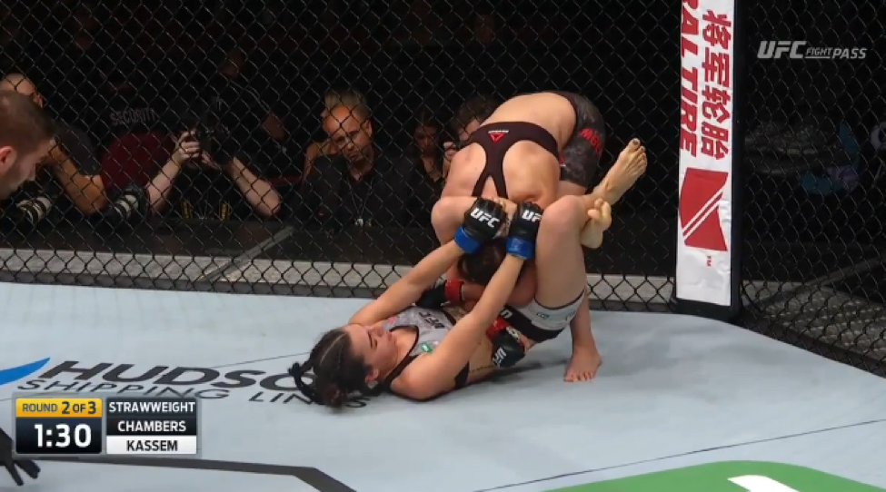 Kassem would look to finish once more with the armbar, but Chambers was able to step over her opponent and remove her elbow from some of the danger.