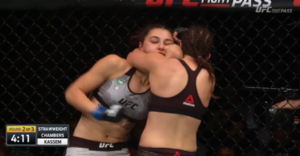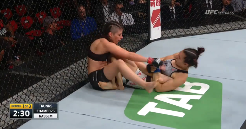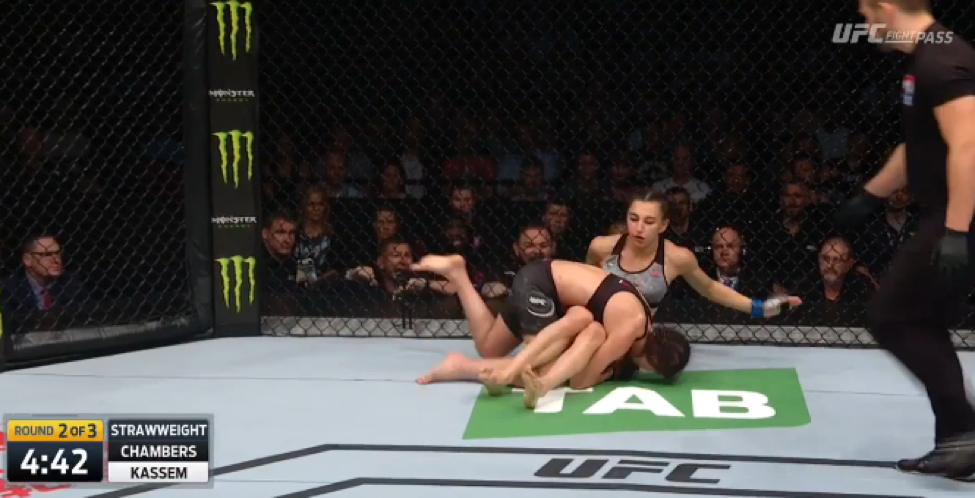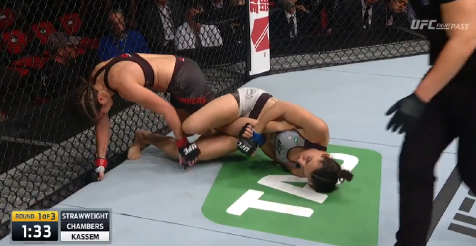 Kassem fought her way out, but not for long, with Chambers shooting in on a rather heavy-handed double leg off a slightly overzealous kick from Kassem.